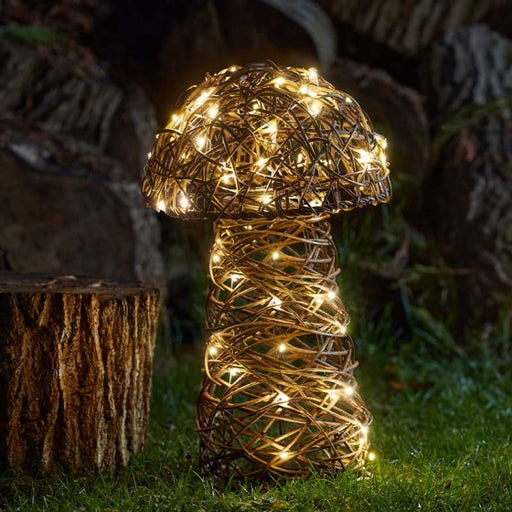 Create rustic warmth with ease with this faux rattan InLit mushroom Warm white LEDs 3xAAA batteries (not included) Auto timer - 6 hours on/18 hours...