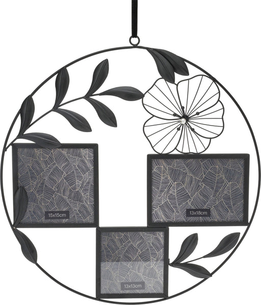 Photo Frame For 3 Pictures On Hanging String- MetalDiameter: 46cm- Decorated With Flowers And Leaves- 1x Frame: 15x15cm- 1x Frame: 13x13cm- 1x Fram...