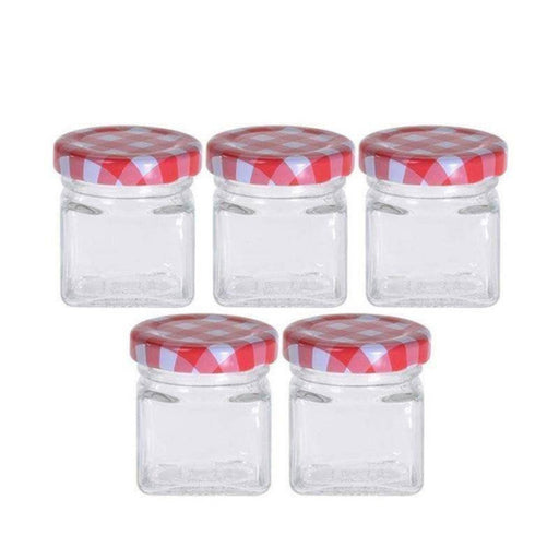 Featuring classic 50ml red gingham lids and clear glass bodies, this 5-piece set is perfect for storing jams, spices, or small kitchen essentials.