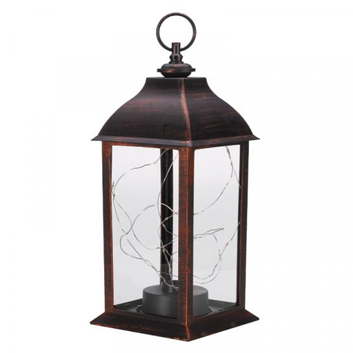 Contemporary plastic lantern with copper brush finish Filled with 30 warm white firefly LED string lights Suitable for indoor and outdoor use Id...